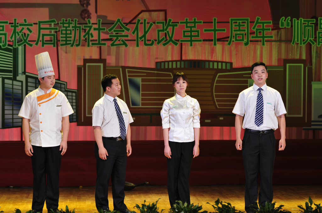 省内高校、省高校后勤协会会员单位以及高校引进的部分社会服务企业纷纷登台献艺,用歌曲、舞蹈、小品等多种艺术表现形式,讴歌了高校后勤改革、创新、发展的伟大成就,展现了新时期高校后勤人团结奋进,无私奉献的精神风貌。KK公司选拨了十位礼仪人员全程为大会服务,并组织了六十人的方阵为演出助阵。其自编自演的群口相声《KK美食香飘校园》,以幽默的语言,丰富的表演,展现了KK公司走进校园服务师生,树立品牌赢得赞誉,为高校后勤的和谐发展贡献了自己的力量。