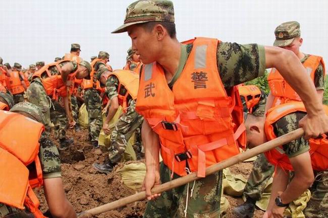 7月11日深夜,武警安徽总队146名官兵开拔到华阳河农场防汛一线,紧急支援抗洪抢险。次日上午,武警安徽总队副司令员储发寿、政治部副主任罗友军会同安徽农垦集团副总经理李家堂看望慰问了参战官兵,短暂休整后,官兵们立即投身抗洪抢险战斗。