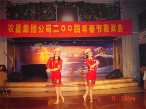 元月17日下午,寒风袭人。但在农垦集团公司机关 所在地新长城大酒店二楼大厅里却是暖意融融, 2004年集团公司机关春节联欢会正在这里举行。机 关和黄山大厦、新长城酒店工作人组织编排表演了 丰富多彩的文娱节目,集团公司领导和离退休老同 志出席了联欢会并观看了表演。