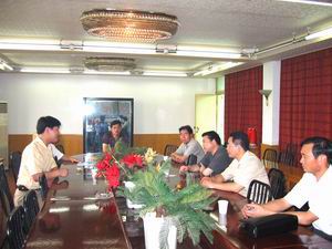 7月12日下午,天气闷热,寿县人大主任、县委书记 李国庆、县长孟祥新、政协主任戴克奎、县委副书 记李承鲁等领导,深入寿西湖农场分别就共建工业 园区建设和小城镇开发等工作与场长、党委书记刘 国强等一班人交换意见和看法。