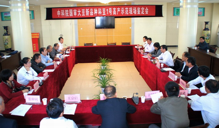 27日上午召开的鉴定总结会上,王国福介绍了食品集团改革发展、种子产业取得的主要成效;有关专家介绍了安徽省大豆生产现状、国审科豆1号的栽培要点和田间管理情况;会议宣布了国审科豆1号实收产量为每亩228.22公斤,超过了生产试验产量标准。与会专家就深入开展好大豆科研工作进行了研讨,认为,今后科研院所要加强与地方政府、农业企业和种业公司的合作,加快推进大豆新品种的繁育和成果转化,大力推广优质大豆品种和大豆高产栽培技术在农业生产上的应用,促进“三农”事业科学发展。